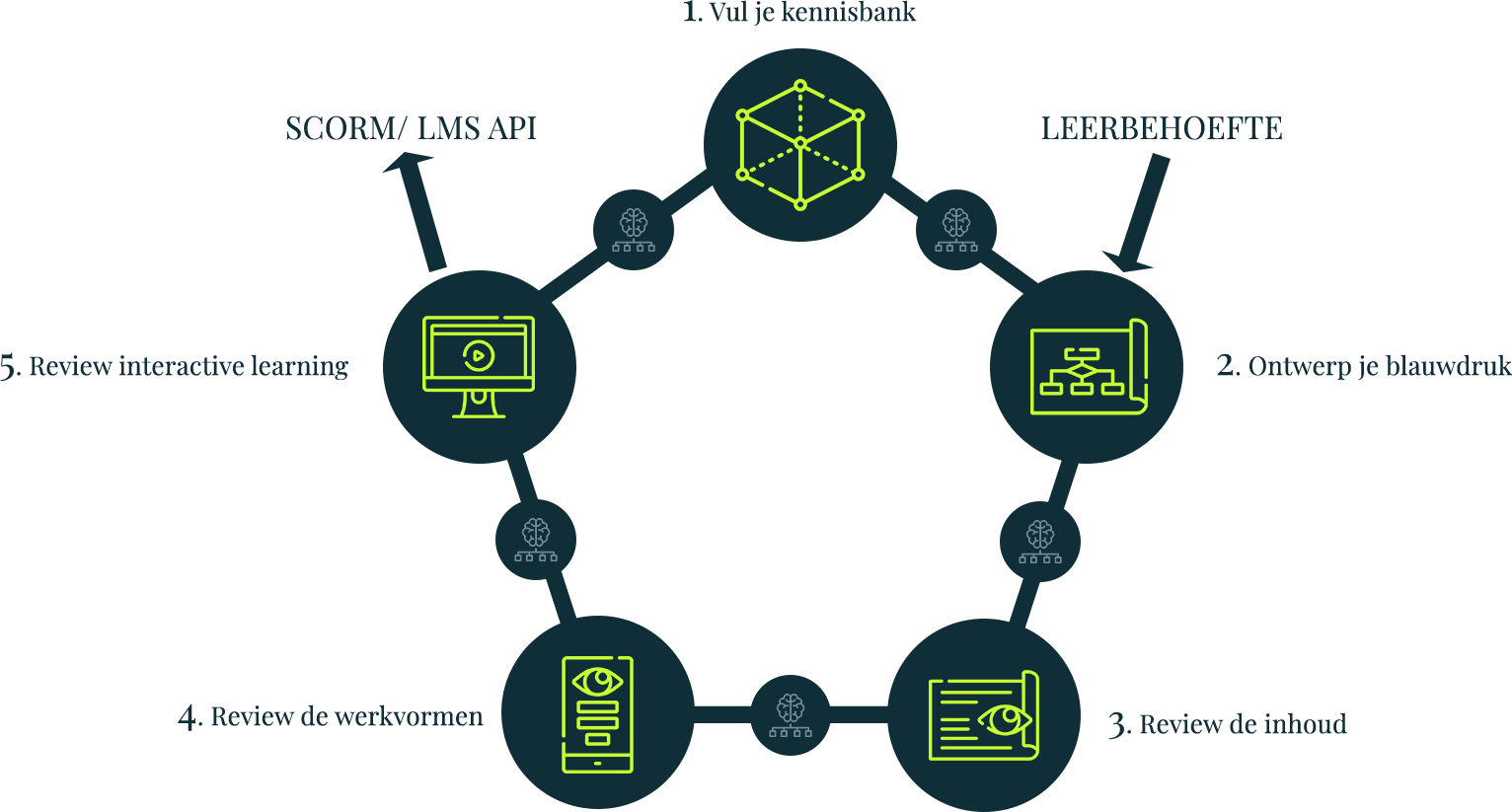 Goede leercontent neemt verschillende vormen aan. Wij noemen dit leerobjecten. Het tijdperk van statische overdracht van theorie zijn we ver voorbij. Leren is een interactief proces, waar op diverse manieren invulling aan kan worden gegeven. Afhankelijk van wat jij passend vindt, kies je voor een interactieve module, opdrachten, toetsen of video-based learning. Uiteraard kun je al deze leerobjecten ontwikkelen op basis van jouw eigen kennisbank. Ontbreekt daarin nog informatie? Dan kun je ook web research gebruiken.
